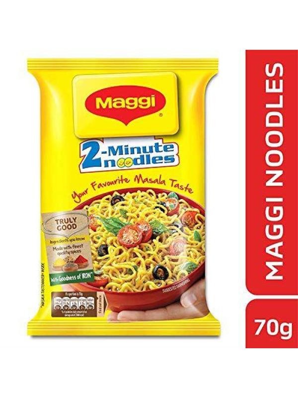Bringing you a classic Indian Snack, Maggi 2 Minute Masala Noodles are perfectly convenient for the snacking occasion. Maggi 2 Minute Masala Noodles come with a wheat noodle cake and a flavour sachet of authentic herbs and spices sourced and grown in India. Simply break the Maggi 2 Minute Noodles into four pieces. Add the Masala flavour sachet into a pan of boiling water (225ml). Cook for 2 minutes whilst stirring occasionally and then serve to enjoy this delicious snack! Comes with 20 Packet and Each Packet 70g
